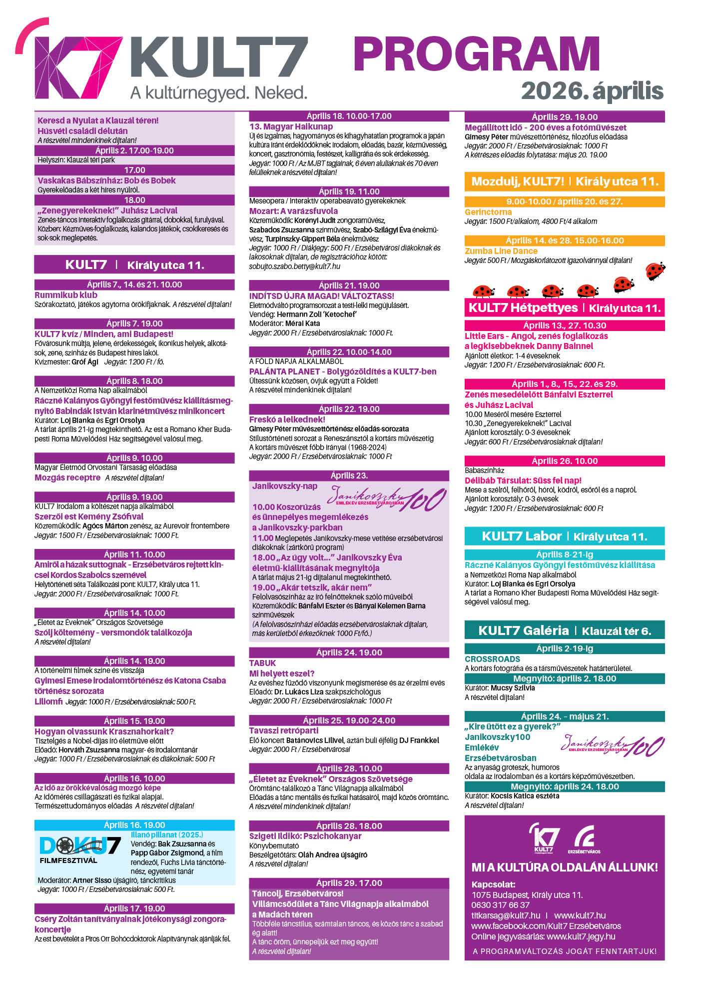 ÁPRILISI PROGRAMOK