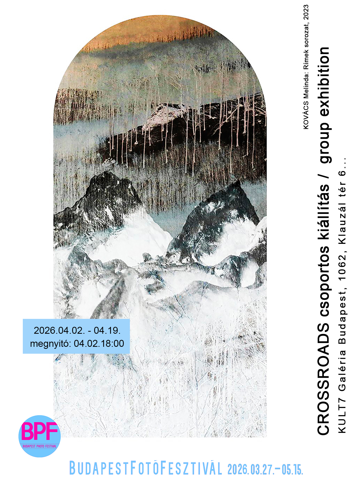 A CROSSROADS című kiállítás a kortárs fotográfia és a társművészetek határterületeit járja körül. A válogatás középpontjában azok az alkotások állnak, amelyek a fotográfiát nem csupán képként, hanem gondolati és formai eszközként alkalmazzák a képzőművészet, grafika, festészet, film, installáció és kollázsművészet kontextusában. A kiállítás arra keresi a választ, hogyan alakul át a fénykép szerepe egy vizuálisan hibrid korban: miként válik a fotó anyaggá, struktúrává, reflexióvá – miközben más médiumokkal párbeszédet folytatva új művészi jelentéseket hoz létre. A pályázat útján kiválasztott alkotások a fotográfia különféle technikáin keresztül tárják fel az átjárhatóság lehetőségeit és a médiumok közötti dialógus erejét. A CROSSROADS egyszerre szakmai reflexió és érzékeny lenyomata annak, ahogyan a kortárs alkotók ma a fotó médiumával gondolkodnak – a megszokott kereteken túl. A tárlat a Budapest FotóFesztivál saját szervezésű kiállításainak szekciójában valósul meg.